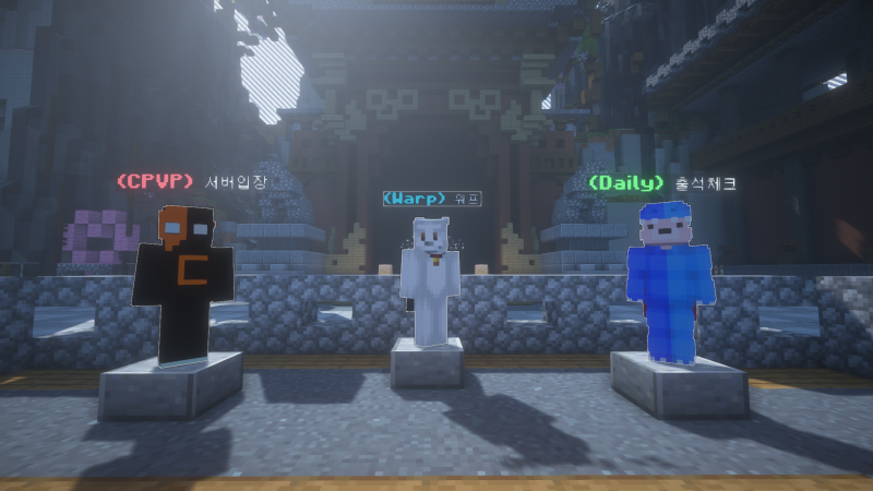 각 왼쪽에서부터 CPVP, 워프, 출석체크 NPC가 존재합니다